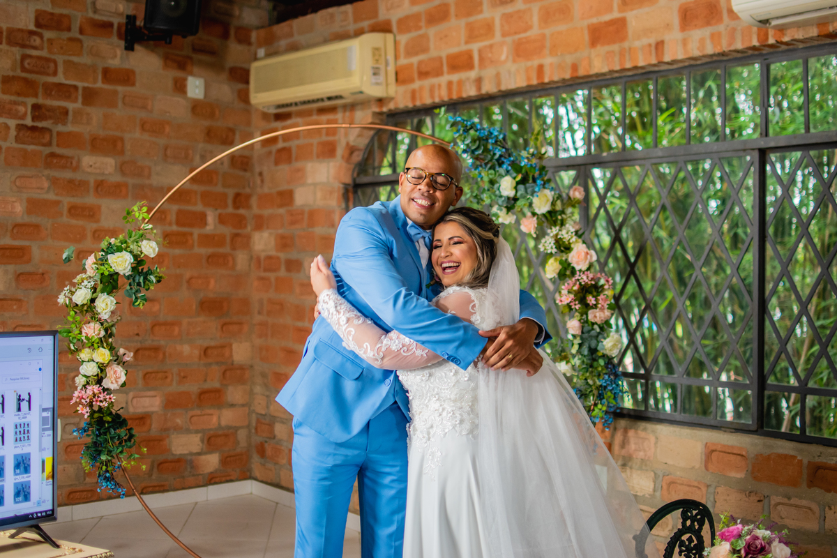o casamento foi com poucas pessoas, com uma cerimonia pelo zoom, e uma recepção linda.