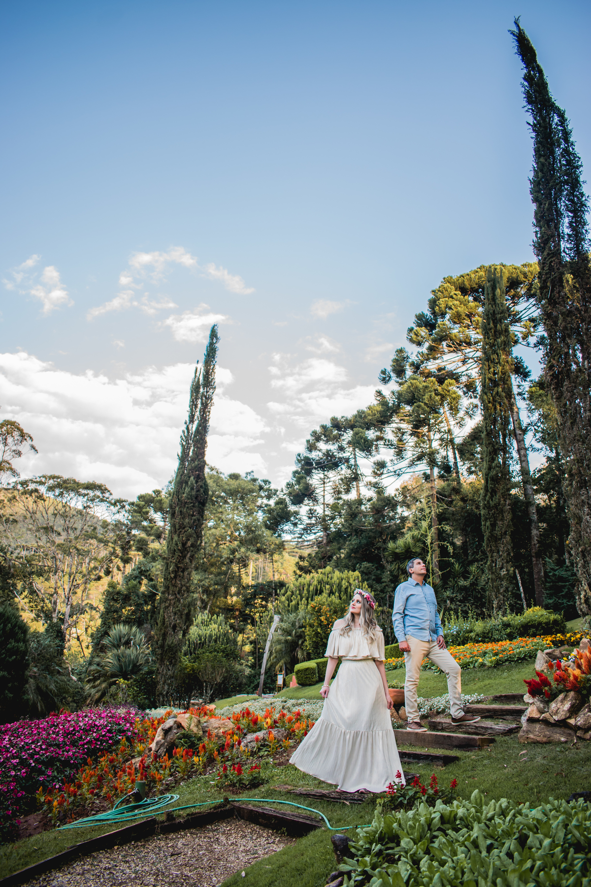 E para finalizar esse ensaio fizemos um ensaio lindo no parque jardim dos pinhais, um parque com vários jardins com flores e árvores bem diferentes do que de costume por aqui, bem colorido um paraíso. Já estávamos no final de tarde é conseguimos pegar o parque vazio.